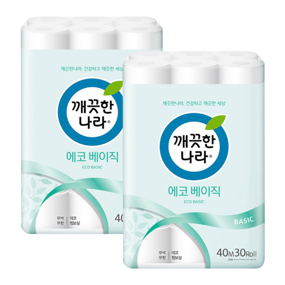 깨끗한나라 에코베이직 40m 30롤 x2 화장지