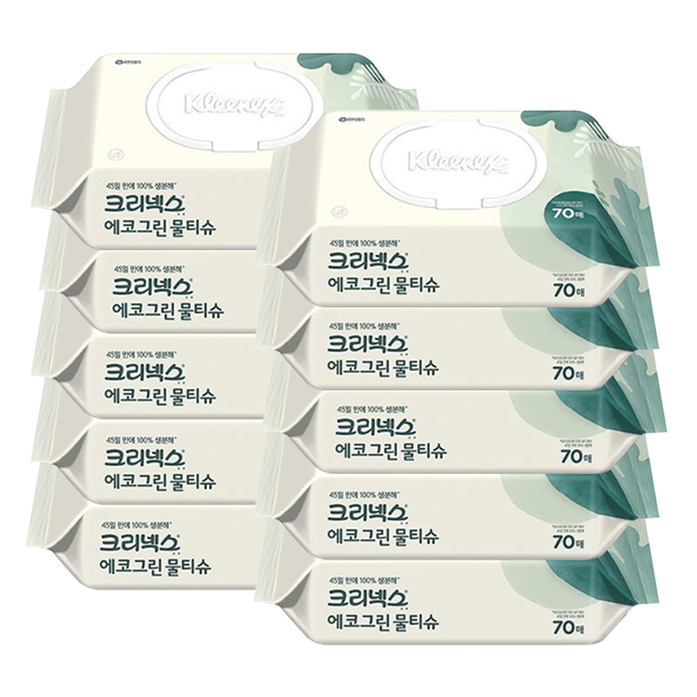 크리넥스 에코그린 물티슈 캡형 70매 10개